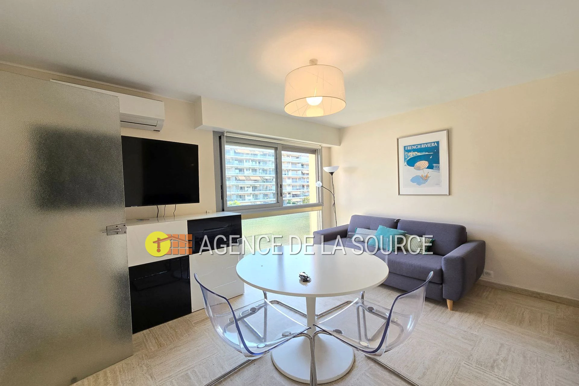 EXCLUSIVE! In the heart of our beautiful Basse Californie neighborhood in a high-end residence on a private and secure park and close to the Croisette and the beaches, bright studio on the TOP floor and in excellent general condition, terrace with a beautiful view of the residence's gardens, living room with alcove, large storage space in the entrance.